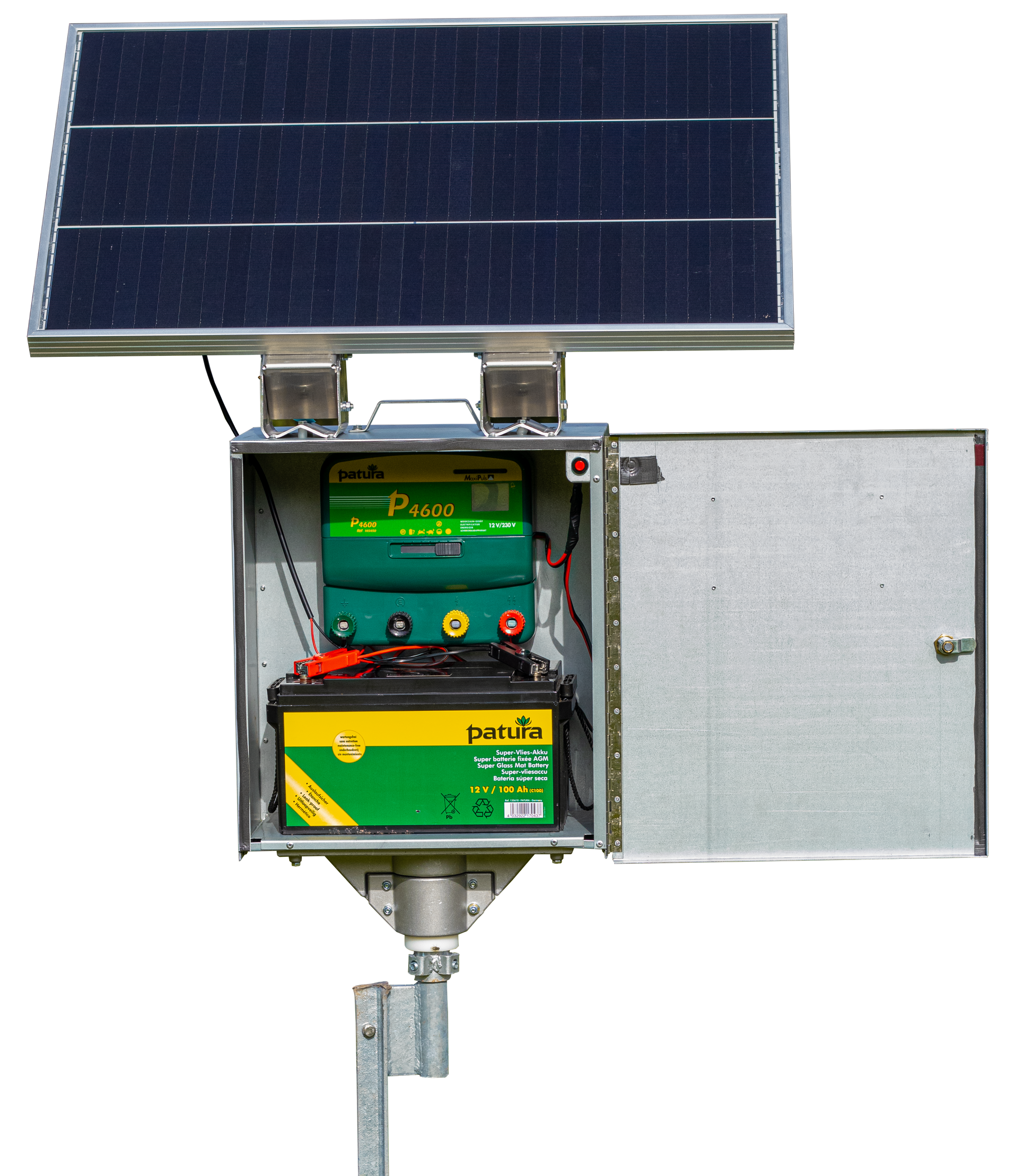 Das P4500 kann sowohl mit 12 Volt Batterie als auch über 230 Volt Netzstrom betrieben werden – du bleibst also vollkommen flexibel. Mit dem 6-Stufenschalter kannst du die Leistung genau auf deine Bedürfnisse abstimmen: Von Batterietest über Tag-/Nachtschaltung bis hin zur halben oder vollen Leistung. Beachte bitte: P4500 mit Sicherheitsbox u. Erdstab: Tag- und Nachtschaltung nicht möglich!